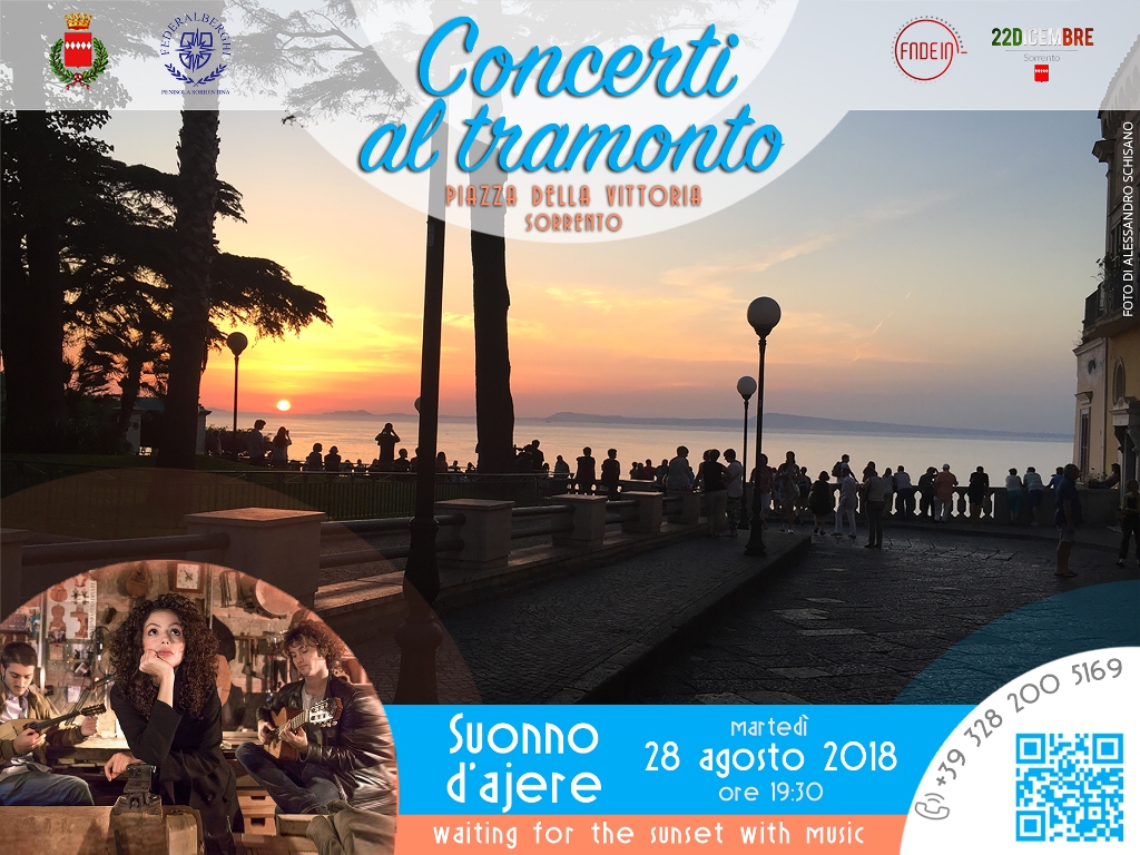 Sarà la canzone partenopea, rivisitata dai “Suonno d’ajere”, la protagonista dell’ultimo appuntamento della prima rassegna de “I concerti al tramonto”, kermesse ideata dal Movimento 22 dicembre, patrocinata dal Comune di Sorrento e realizzata da FadeIn.
