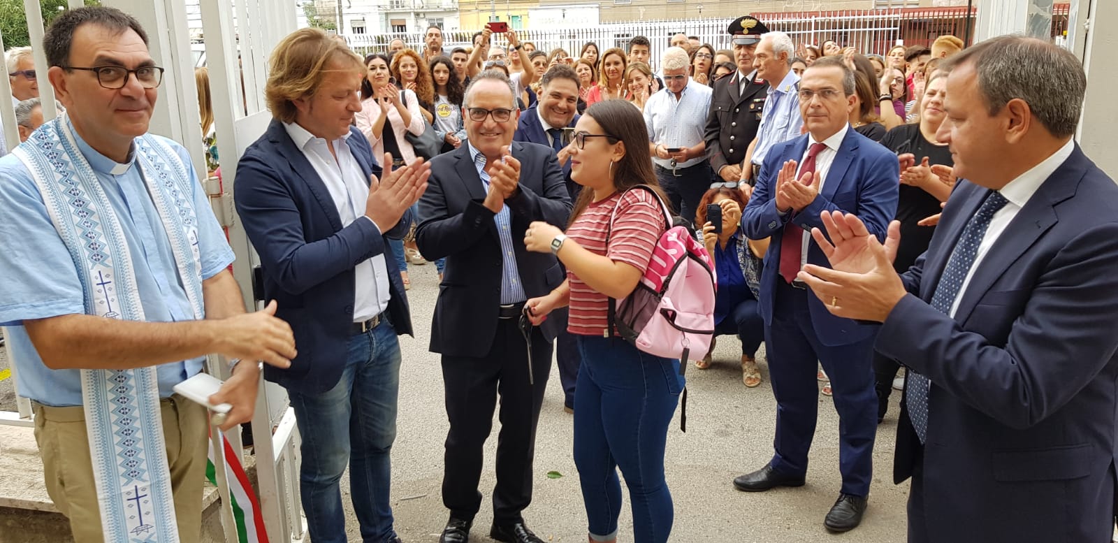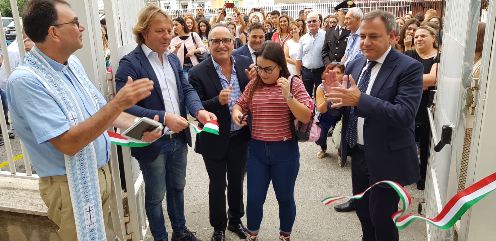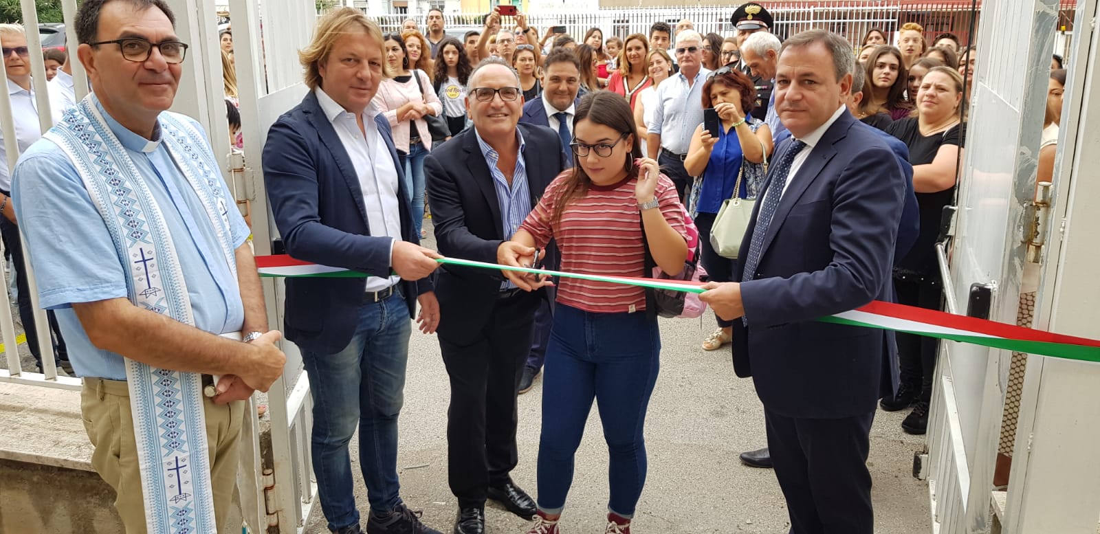 Presenti all’inaugurazione, per l’Amministrazione comunale, il sindaco Vincenzo Ascione e l’assessore alla Cultura, Aldo Ruggiero; al taglio del nastro anche i vertici delle forze dell’ordine e della Polizia Locale. A rappresentare l’Ente provinciale, il consigliere delegato all’Edilizia scolastica, Domenico Marrazzo. Don Ciro Cozzolino ha benedetto le nuove aule e gli studenti nel loro primo giorno di scuola.