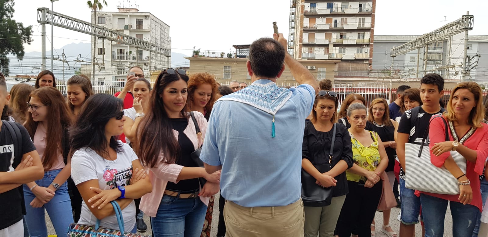 A varcare l’ingresso della nuova sede, in modo scaglionato, dai più piccoli ai più grandi, gli studenti delle sezioni A e B, appunto dell’indirizzo Linguistico del Liceo torrese.
