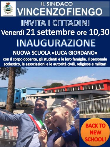 Dopo circa tre anni di lavori urgenti necessari alla messa a norma venerdì 21 settembre riapre la scuola “Luca Giordano” con una manifestazione inaugurale alle ore 9,30. Presenti il Presidente De Luca e il Direttore Regionale Franzese