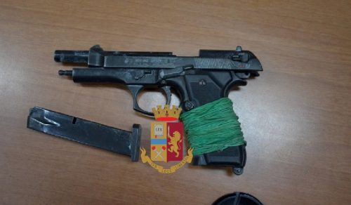 I poliziotti hanno effettuato una serie di controlli all’interno di uno stabile denominato Palazzo dei contrabbandieri, e ispezionando un vano seminterrato con ingresso murato ma con un buco nella muratura tale da permettere il passaggio di una persona, hanno rinvenuto in una borsa da ginnastica una riproduzione di una pistola Beretta del tipo di quello in uso alle forze dell’ordine, completo di caricatore di marca Bruni, una sciabola di colore nero, 534 cartucce da fucile tipo caccia di vario calibro e sei cartucciere.