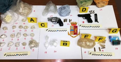 In questo immobile, in tre diversi punti ed esattamente all’interno di un vano ricavato nel batti piedi di uno scalino tra il secondo ed il terzo piano, in alcune intercapedini ricavate all’interno del vano ascensore, nonché all’interno di un grosso vaso/fioriera dove c’era una pianta ornamentale, era stato occultato, abilmente, un cospicuo quantitativo di sostanza stupefacente risultata essere cocaina, per un peso complessivo di 312.7 grammi, un bilancino di precisione, della sostanza di colore bianco non reattiva ai test colorimetrici, verosimilmente utilizzato per il taglio della droga ed anche due pistole con relativo munizionamento.