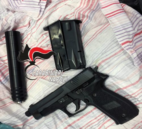 I Carabinieri del Nucleo Operativo della Compagnia Centro effettuando perquisizione nella casa in via delle Grazie di Concetta Lonato, hanno rinvenuto occultati nella camera da letto della signora 20 grammi di cocaina e una pistola semiautomatica calibro 9 con tanto di silenziatore.