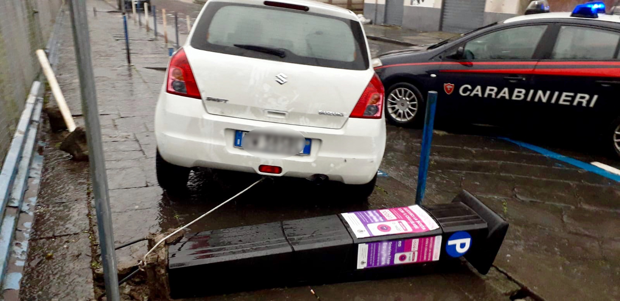 E’ stato bloccato mentre tentava di portare via un parcometro del comune di Marigliano installato su via Roberto De Vito legando la colonnina alla sua utilitaria.