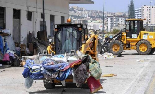 Carabinieri e della Polizia Municipale, le operazioni di sgombero e abbattimento dell’area urbana denominata “Parco della Marinella”, sita in via Marina, in quanto abusivamente occupata da cittadini extracomunitari e senza fissa dimora.