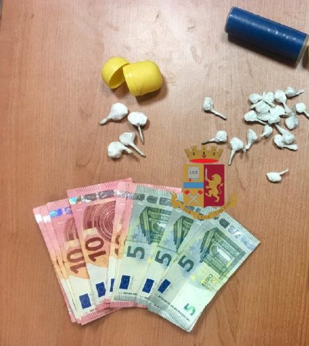 Da un controllo sul giovane, nascosti in una tasca della felpa che indossava sono stati rinvenuti circa 12 grammi di cocaina, già confezionata e stipata nei contenitori di plastica per le sorprese dei famosi ovetti di cioccolata per bambini e la somma di 100 euro, suddivise in banconote di vario taglio.