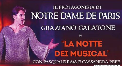 Graziano Galàtone, conosciuto nel ruolo di Febo nell’opera popolare Notre Dame de Paris scritta da Riccardo Cocciante, andrà in scena a Scafati con “La Notte dei Musical”. Un concerto dove verranno messi in