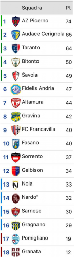 Eh si, ci voleva proprio questa vittoria sul campo di una squadra che nelle ultime gare aveva ottenuto ben 12 punti sui 15 disponibili, battendo corazzate tipo Taranto e Cerignola. Il Savoia, dal canto suo era ben concentrato ed ha fatto la sua gara per un risultato positivo, che ora consolida il suo quinto posto con qualche punto di vantaggio sulle immediate inseguitrici.
