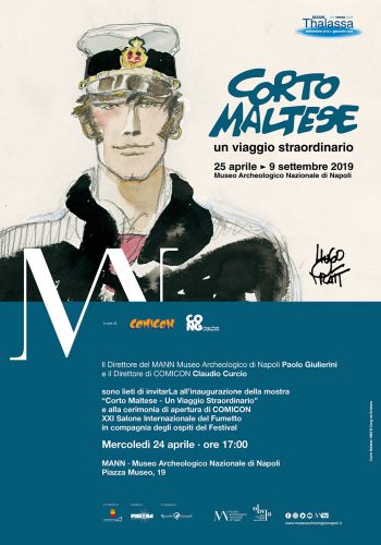 “Aspettando Thalassa non potevamo trovare miglior compagnia di Corto Maltese! Si rinnova con una originale mostra dedicata al personaggio cult di Hugo Pratt, pensata per il MANN e per Napoli, la stimolante collaborazione tra il Museo e COMICON, nel solco del progetto Obvia, ovvero della contaminazione tra arti e linguaggi, tra antico e contemporaneo. L’esposizione, la prima così completa che la città dedica a uno dei più grandi fumettisti mondiali e alla sua graphic novel dallo spessore letterario, fa parte di un percorso di eventi, tra il Mann e i Campi Flegrei, verso «Thalassa. Mare, mito, storia ed archeologia» . Dal 25 settembre 2019 al marzo 2020 nel salone della Meridiana saranno allestite le meraviglie dell’archeologia subacquea del Mediterraneo conservate nei più importanti musei del mondo, in otto sezioni: Il sacro, il mito, la guerra, il commercio, l’esplorazione e navigazione, la vita di bordo, l’otium, le risorse. ‘Un viaggio straordinario’ sta per iniziare!” – dichiara il Direttore del Museo Archeologico Nazionale di Napoli, Paolo Giulierini.