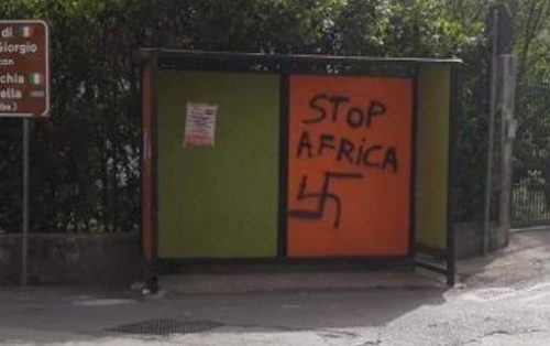una bomboletta spray aveva appena scritto “Stop Africa” firmando con una svastica.