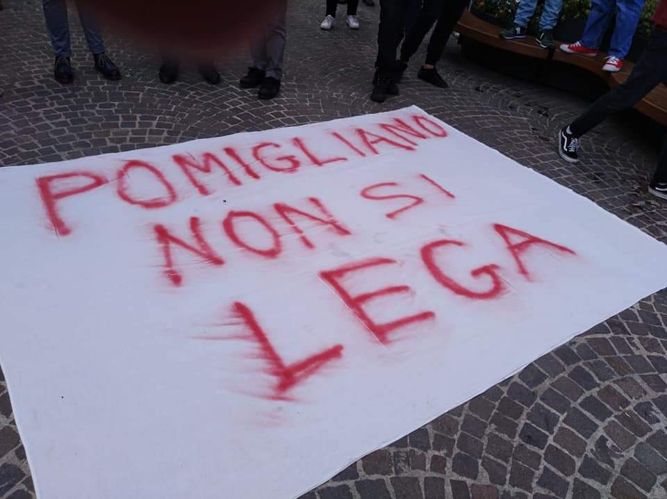 Nonostante in un comunicato sui social si sia definita questa protesta, senza alcuna sponsorizzazione partitica e senza presenza di centri sociali, in piazza c’erano alcuni giovani militanti del PD pomiglianese come il consigliere Comunale, Antonio Tondi, segno tangibile che, nonostante la politica locale sia caratterizzata dall’attuale maggioranza di Forza Italia e dell’incisiva opposizione pentastellata, il Partito Democratico, da sempre “primo partito” fino alle ultime elezioni comunali, riesca ancora a far sentire la sua voce.