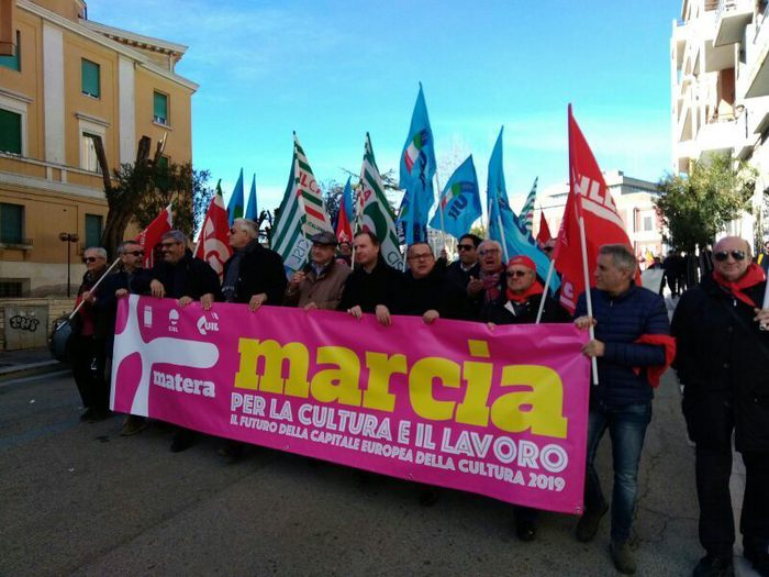 La risposta alle politiche, meglio ai proclami senza costrutto del “governo del cambiamento” – cambiamento in peggio di come stavamo ovviamente -, ci viene dalla manifestazione su “Europa, cultura e lavoro” promossa a Matera da Cgil, Cisl e Uil. Alle immagini idilliache coniate dal trio Salvini, Di Maio, Conte di un’Italia prosperosa ed in evoluzione su tutto in questo 2019, rispondono con dati alla mano incontrovertibili i segretari generali di Cgil, Cisl e Uil. Altro che “anno bellissimo”. Meglio parlare di anno “nero fumo”. Ci dobbiamo aspettare in autunno una legge finanziaria che parte con 40 miliardi di passivo per esorcizzare l’aumento dell’Iva, ma anche per finanziare il “reddito di cittadinanza”. Tutto questo con una crescita che non si aggira sull’1%, come qualcuno sperava, ma parliamo di uno striminzito 0,2%, se tutto va per il verso giusto. E non è detto. Altro che crescita! Lo dice con chiarezza Annamaria Furlan all’iniziativa unitaria di Matera.