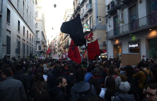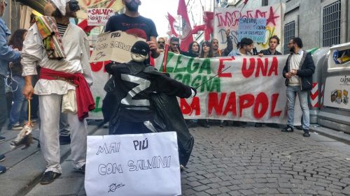 Tensione alla conclusione della manifestazione, partecipata da migliaia di persone, contro la presenza di Salvini in città. La mobilitazione era stata organizzata per contestare il comizio elettorale del ministro che si doveva tenere al Teatro Augusteo,