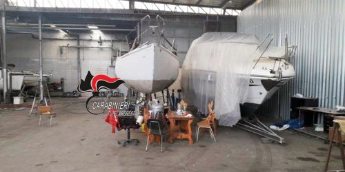 In occasione dell’ispezione i militari hanno rinvenuto e sequestrato un capannone ampio mille metri quadrati, 21 barche, taniche di solvente, un bancone da lavoro, una levigatrice, un
