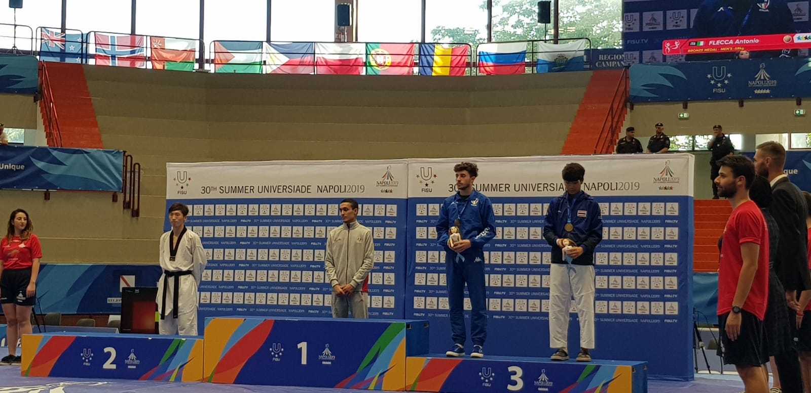 Prima medaglia per l’Italia al torneo di Taekwondo. A conquistarla Antonio Flecca, bronzo nei -58 kg. Nella splendida cornice del ristrutturato Palazzetto dello Sport di Casoria, il 20enne calabrese, n.46 del ranking mondiale, è stato sconfitto in semifinale dal mongolo Tumenbayar Molom con il punteggio di 11-10.