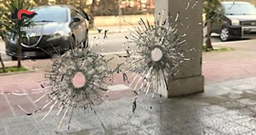 Nel secondo episodio, avvenuto il 28 febbraio successivo alle ore 03.30, gli autori del reato, stavolta, giungevano sul posto dell’agguato con un’utilitaria, il cui passeggero scendeva dall’auto ed esplodeva almeno 9 colpi verso la vetrata, danneggiandola. Ai Carabinieri non c’è voluto molto ad individuare l’obiettivo delle azioni criminose, ovvero un pregiudicato del luogo, già condannato per gravi reati, che risiede nella suddetta palazzina.