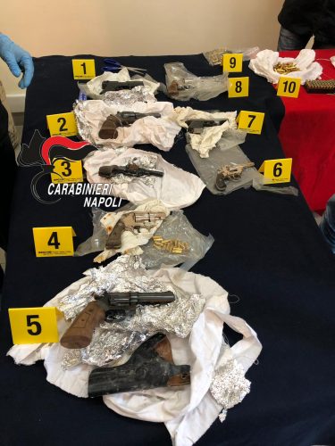 Custoditi in una tanica interrata c’erano una pistola semiautomatica con matricola abrasa e caricata con 9 cartucce, un’altra semiautomatica ma con matricola punzonata, un revolver con matricola, 2 revolver con matricola punzonata e 3 revolver senza matricola.