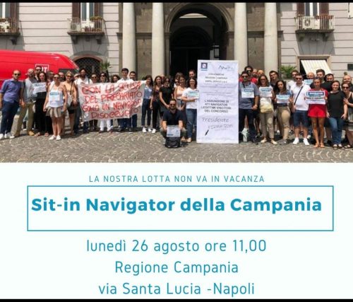 I Navigator campani non si arrendono ed inizieranno lo sciopero della fame. Lunedì 26 agosto 2019 alle ore 11, presso la sede della Regione Campania in via S.Lucia a Napoli, ci sarà una nuova manifestazione. Seguirà, alle ore 11:30, una conferenza stampa durante la quale sarà annunciato l’inizio dello sciopero della fame da parte di alcuni componenti del gruppo dei vincitori del concorso.
