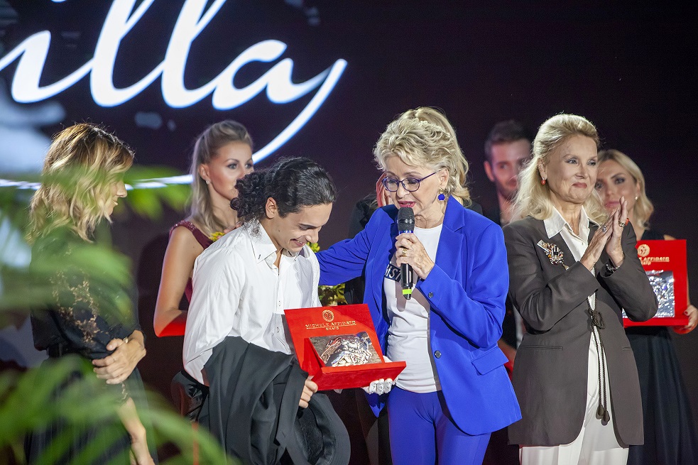 Donne unite per le donne, quindi, anche per ricordare che il tumore al seno, nel nostro Paese, è il big killer più letale e più frequente del genere femminile e principale causa di mortalità oncologica. E per ricordare che ogni anno, in Italia, oltre 100 donne vengono uccise da uomini, quasi sempre quelli che sostengono di amarle. Violenza che, per una donna, non è soltanto una minaccia di morte, ma anche una ferita all’immagine di sé, alla sua femminilità, sessualità e maternità. L’evento, diretto da Antonio Centomani e aperto dal violino elettronico del magico Andrea Casta, ha raccontato storie di donne in rinascita che hanno saputo esorcizzare la terribile esperienza con la violenza mettendosi a disposizione delle altre donne e assegnato il prestigioso riconoscimento anche a personalità che si sono distinte per il loro impegno sui due temi. Grandi emozioni ha regalato il giovane Carmine Ammirati (premiato da Enrica Bonaccorti), orfano del Femminicidio, che ha dedicato alla mamma scomparsa, Enza Avino (vittima del suo ex a Terzigno), per voce di Vincenzo Bocciarelli, una toccante poesia e, affiancato da Antonio Balsamo e Alina Camisano, un passo di danza (passione che ha ereditato dalla mamma scomparsa) affiancato da Antonio Balsamo e Alina Camisano con le coreografie di Andrè de la Roche. Assieme a Carmine il riconoscimento, consegnato da Barbara Bouchet, è andato alla Presidente dell’Associazione Edela, Roberta Beolchi, impegnata ad assistere gli orfani del femminicidio.