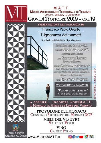 Giovedì 17 ottobre alle ore 19 presso il MATT – Museo Archeologico Territoriale di Terzigno ci sarà la presentazione del libro ‘L’ignoranza dei numeri’ dell’autore vesuviano Francesco Paolo Oreste. Interverranno con l’autore la Dott.ssa Genny Falciano, assessore alla cultura, l’Avv. Francesco Ranieri, sindaco di Terzigno, la Dott.ssa Rossella Annunziata, Sost. Procuratore della Repubblica presso il tribunale di Torre Annunziata.