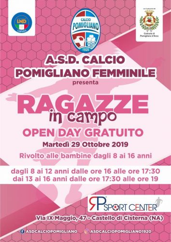 La società calcistica A.S.D. Pomigliano, una delle eccellenze pomiglianesi che vanta ben 17 campionati consecutivi disputati in serie D e che da quest’anno milita nell’eccellenza Campania girone A, ha lanciato con l’ausilio dell’Amministrazione comunale e della Lega Nazionale Dilettanti, un progetto chiamato “Ragazze in campo” volto alla promozione del calcio femminile nelle scuole rivolto alle fanciulle dell’ hinterland in una fascia d’età compresa tra gli otto e i sedici anni.