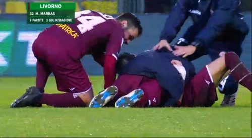 Livorno (3-4-3): Zima 5; Di Gennaro 5.5 (46′ Braken 6) Gonnelli 6 Boben 6.5; Del Prato 6 Agazzi 6.5 Luci 6.5 (78′ Viviani 6) Porcino 6; Marsura 6 Raicevic 6.5 Marras 7.5. All. : Breda 7.