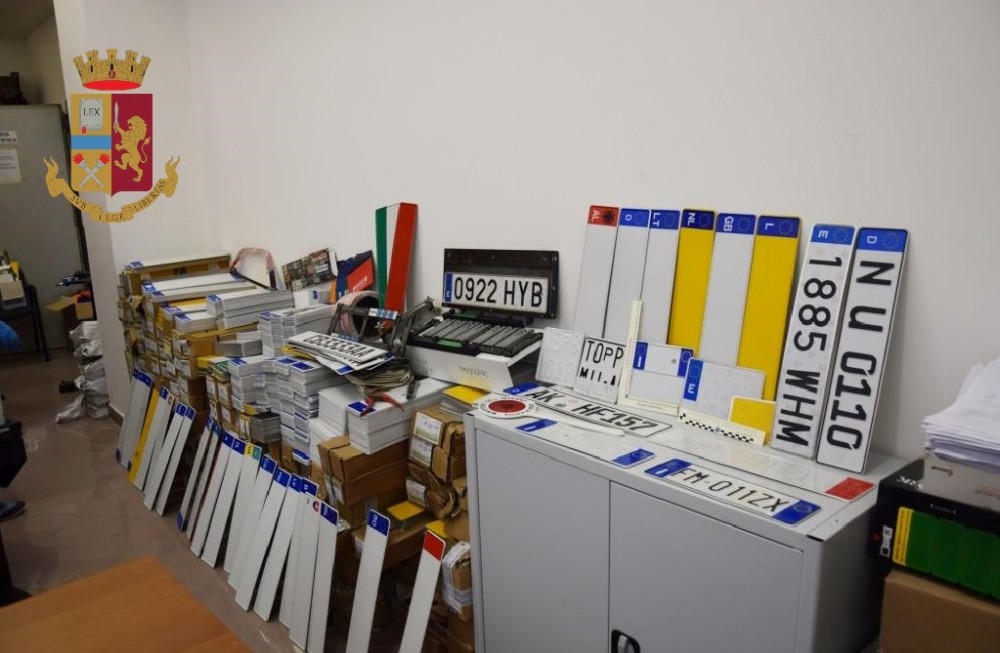 Mercoledì pomeriggio personale del Commissariato di Castellammare di Stabia ha fatto irruzione in un terraneo della cintura stabiese dove sono state rinvenute circa 7.000 targhe per veicoli, soprattutto straniere, di cui alcune già pronte per essere immesse sul mercato clandestino, ed altre totalmente in bianco nonché cliché, stampi ed una pressa.