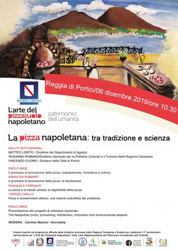 In occasione del secondo Anniversario dell’iscrizione de “L’Arte del Pizzaiuolo Napoletano” nella Lista del Patrimonio culturale immateriale dell’Umanità – UNESCO, la Regione Campania, in collaborazione con Scabec – Società Campana Beni Culturali SpA, Dipartimento di Agraria dell’Università degli Studi di Napoli “Federico II”, Fondazione UniVerde, Associazione Pizzaiuoli Napoletani, Associazione Verace Pizza Napoletana e Re.N.Is.A. – Rete Nazionale Istituti Agrari, ha promosso quattro giorni di celebrazioni – dal 4 al 7 dicembre – che si articoleranno in convegni, incontri e degustazioni, proiezioni con gli studenti, percorsi esperienziali, benedizione dei pizzaiuoli e festeggiamenti.