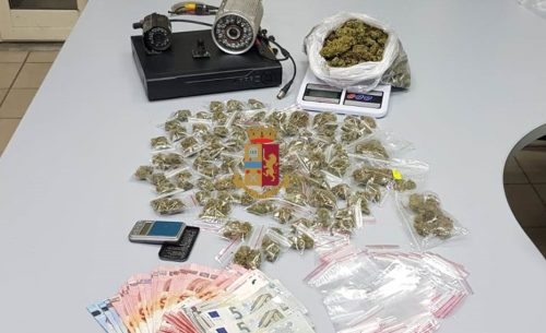 Nel corso dell’attività i poliziotti hanno recuperato un sacchetto, che l’uomo aveva gettato dal balcone, contenente circa 240 grammi di marijuana suddivisa in 92 bustine, un bilancino ed bustine per il confezionamento della droga. Inoltre, nell’abitazione, è stato scoperto un impianto di videosorveglianza, con telecamere puntate sulla strada, e la somma di 345 euro.
