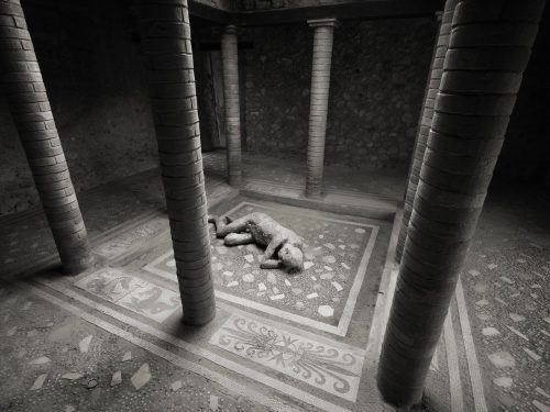 A Modena, Kenro Izu presenta Requiem for Pompei, un progetto iniziato nel 2015, in collaborazione con Fondazione Fotografia Modena, dedicato alla città campana distrutta dall’eruzione del Vesuvio nel 79 d.C. e sepolta sotto la cenere e i lapilli. Gli scavi archeologici hanno restituito non solo gli edifici, ma anche le forme esatte dei corpi degli abitanti nel momento della morte, grazie ai calchi eseguiti sui vuoti che essi hanno lasciato sotto la coltre pietrificata.
