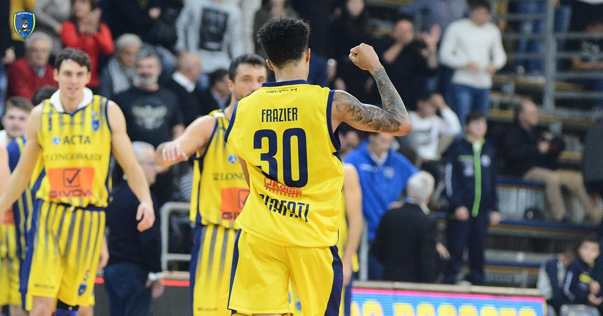 Comincia di gran carriera la ripresa delle ostilità per i colori gialloblù: Tommasini è il mattatore del nuovo tentativo di allungo (32-25 al 23’). Ma Omogbo, Bortolani e Polite riducono al minimo nuovamente lo svantaggio (32-31 al 24’), fino ad azzerarlo del tutto (35-35 al 26’).
