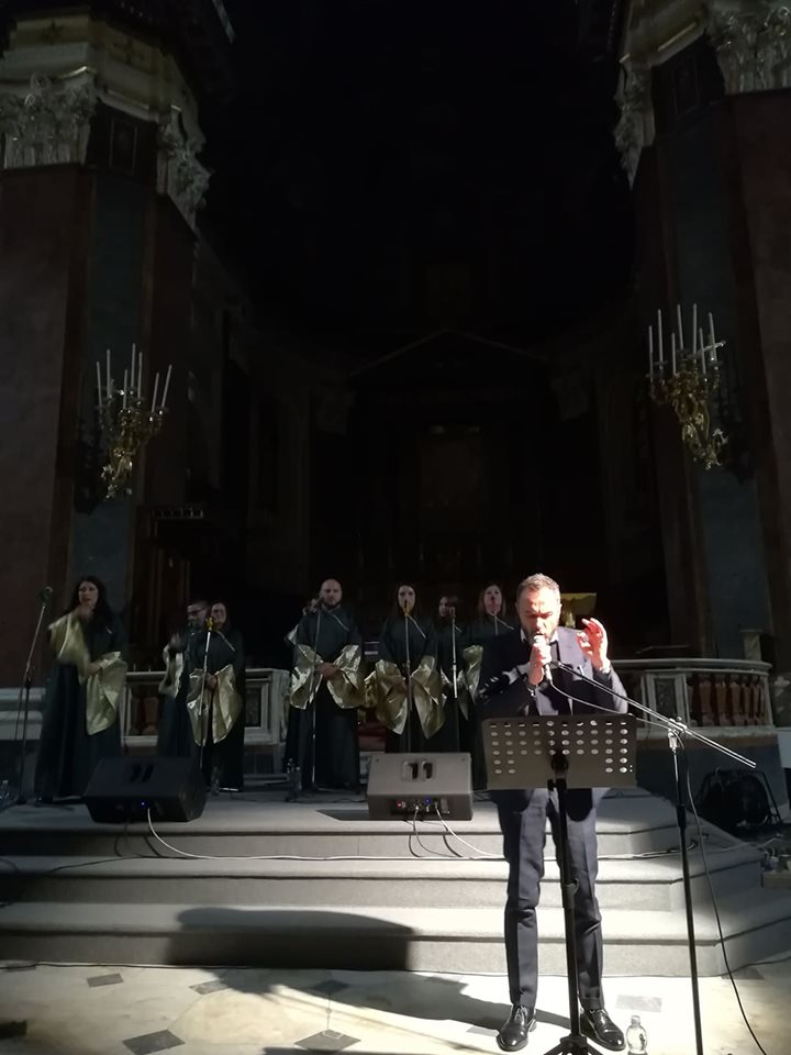 Massimiliano Gallo e Tosca D’Aquino in scena a Castellammare di Stabia. Proseguono gli eventi previsti dal cartellone di Natale stabiese. La cornice è ancora una volta la Concattedrale di Santissima Maria Assunta e San Catello: dopo l’inaugurazione del Presepe Stabile Aiello avvenuta mercoledì 18 dicembre, la chiesa ieri giovedì 19 dicembre ha fatto da sfondo allo spettacolo di Massimiliano Gallo e di Tosca D’Aquino. Le letture da parte dei due attori di celebri passi teatrali di Eduardo De Filippo come Il regalo di Natale e Je vulesse truvà pace, sono state accompagnate dall’esibizione di un coro gospel. La musica si è unita alla recitazione, dando vita ad un poliedrico show. Massimiliano Gallo tra sketch, canzoni e risate, si è raccontato meglio ed ha percorso alcuni dei momenti più importanti della sua carriera.