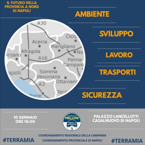 Si terrà venerdì 10 gennaio alle ore 18 a Casalnuovo di Napoli l’evento promosso e organizzato dalla rete territoriale di Fratelli D’Italia nella provincia a Nord di Napoli.