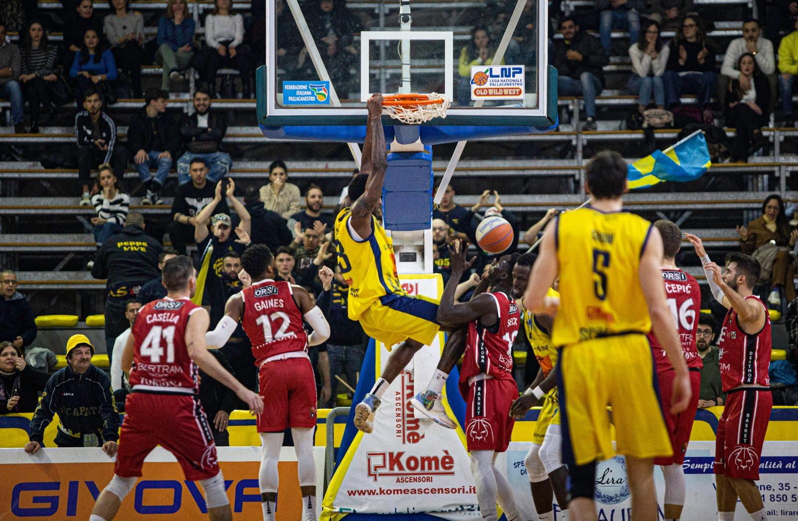 Il lavoro sporco sotto le plance e l’ottimo impatto di Crow consentono ai locali di crescere (parziale di 9-3) e iniziare a scavare un piccolo solco (28-23 al 13’). La risposta di Tortona non si lascia attendere: è Grazulis a fare la voce grossa e a ricucire il piccolo strappo, insieme al compagno di reparto Seck e a Tavernelli (30-32 al 17’). I minuti che separano le due formazioni dall’intervallo lungo sono tutte di marca gialloblù, che chiudono avanti 43-37.