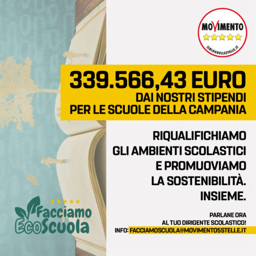 “Con i deputati e senatori del MoVimento 5 Stelle abbiamo messo a disposizione 3 milioni di euro ricavati dalle restituzioni degli stipendi da parlamentare per progetti che portino nelle scuole italiane il tema della sostenibilità ambientale. I fondi saranno distribuiti su base regionale e a disposizione della Campania ci sono 339.566,43 euro.