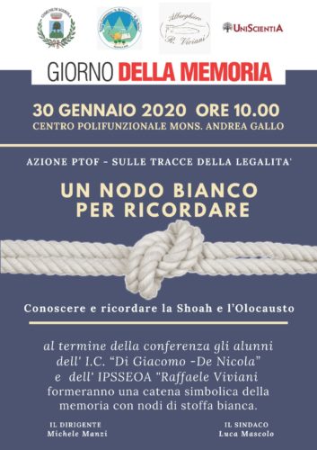 “Un nodo bianco” è il titolo della conferenza in programma giovedì 30 gennaio alle ore 10.00 presso il Centro Polifunzionale Mons. Andrea Gallo alla quale parteciperanno gli alunni delle classi terze della scuola secondaria di primo grado “S. Di Giacomo – E. De Nicola” e le classi prime della secondaria di secondo grado dell’Istituto Alberghiero “R. Viviani” di Agerola.