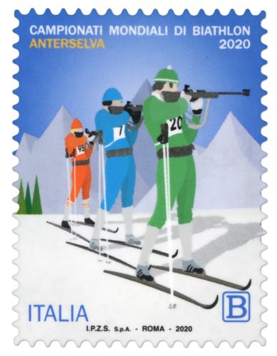 Poste Italiane comunica che oggi 12 febbraio 2020 è stato emesso dal Ministero dello Sviluppo Economico un francobollo ordinario appartenente alla serie tematica “lo Sport” dedicato al Campionato del mondo Biathlon 2020, relativo al valore della tariffa B pari a 1,10€.