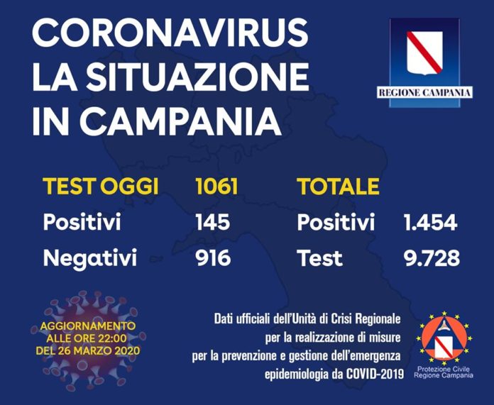 Molti i tamponi esaminati oggi, come comunicato dall’Unità di Crisi della Regione Campania. Ben 1454 in tutta la giornata di cui 1061 nel pomeriggio-sera.