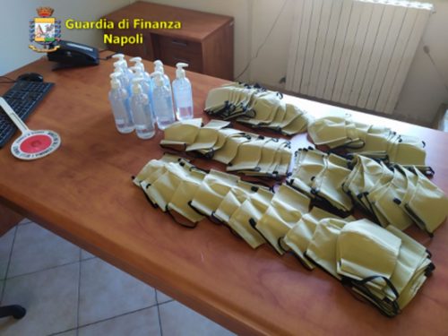 Il Comando Provinciale della Guardia di Finanza di Napoli ha sequestrato nei confronti di un’impresa di Brusciano (NA) oltre 5700 confezioni di gel igienizzante per mani, da 500 ml. cadauno, e più di 1000 mascherine prodotte senza autorizzazione ministeriale.
