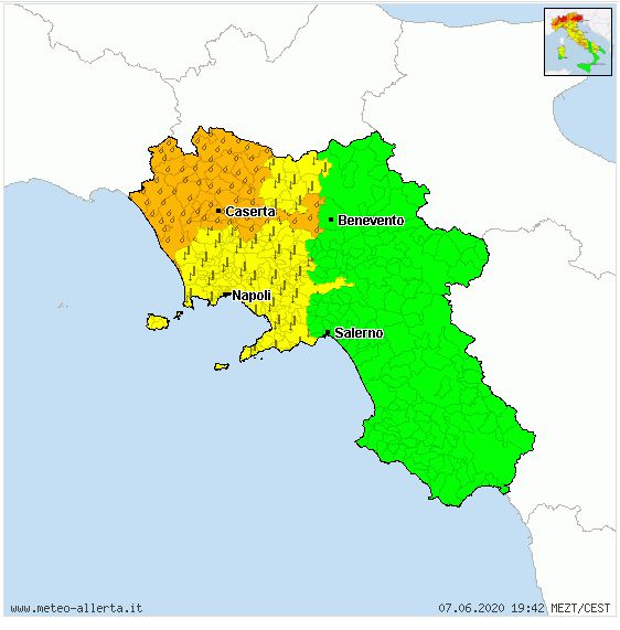 – Danni alle coperture e strutture provvisorie dovuti a raffiche di vento, fulminazioni, possibili grandinate e a caduta di rami o alberi. La Protezione civile della Regione Campania raccomanda alle autorità competenti di porre in essere tutte le misure atte a prevenire e contrastare i fenomeni attesi, sia in ordine al dissesto idrogeologico che alle possibili conseguenze del vento.