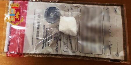 I poliziotti hanno bloccato lo spacciatore trovandolo in possesso della somma di 195 euro ed hanno recuperato l’involucro contenente 10 grammi circa di cocaina.