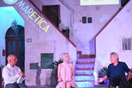 Giunta alla sua terza edizione, sabato 12 settembre, MARetica ha premiato Claudio Magris per “Polene” nella suggestiva cornice della piazzetta di Terra Murata trasformata in teatro di colori e immagini da Alessandro Papa e di suoni e canto dal trio “Scialacore”.