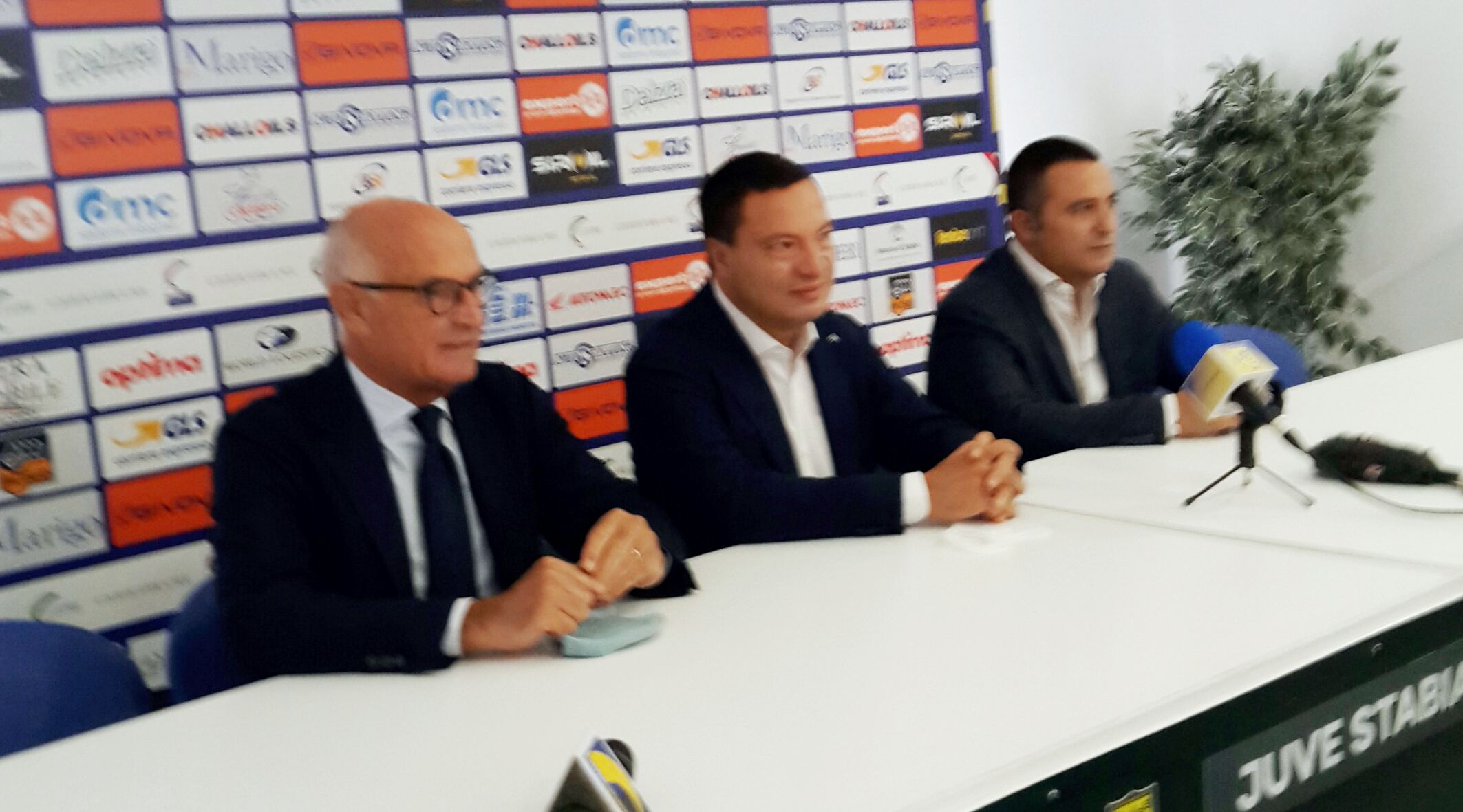 Dopo la retrocessione in serie C dello scorso luglio, prima conferenza della società Juve Stabia oggi nella sala stampa del Menti. Al presidente Andrea Langella, si affianca il fratello Giuseppe che ha acquisito l’altra metà delle quote dell’ex socio Franco Manniello.