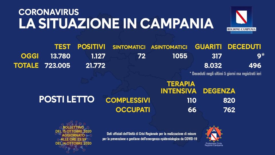 Mercoledì 14 ottobre – 8,17% – 1.127 contagiati