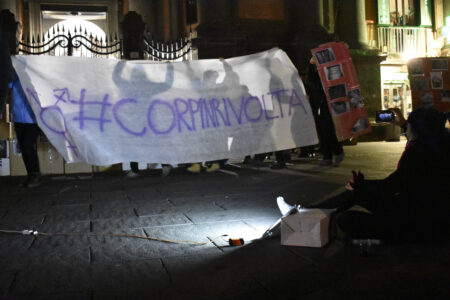 Nei giorni precedenti all’evento, sulle piattaforme social delle pagine organizzatrici è stato lanciato l’hashtag #CORPIINRIVOLTA, una campagna che ha messo al centro i corpi delle donne, gli stessi corpi che sono costantemente oggetto di critica ed accusa.