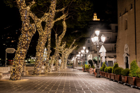 E se nella storia dell’umanità il più grande simbolo della speranza è la stella cometa che ha brillato sulla capanna di Betlemme, la scelta è stata quella di illuminare parte della città per ricordare per l’appunto quella luce di speranza. Ecco così le luminarie al centro storico, che da tradizione sono state accese negli ultimi giorni di novembre per far si che la città fosse già parata per il 30 novembre, giorno della festa patronale di Sant’Andrea Apostolo. Illuminate come simbolo del Natale anche le chiese di tutte le frazioni della città capofila della Costiera Amalfitana. Assieme al riflesso delle luci, nelle case degli amalfitani non mancherà di entrare dalle strade il suono delle zampogne. Nei giorni dell’Immacolata, la vigilia di Natale, Natale, Santo Stefano, 31 dicembre e Capodanno gli zampognari riempiranno le tipiche stradine amalfitane della loro musica tradizionale.