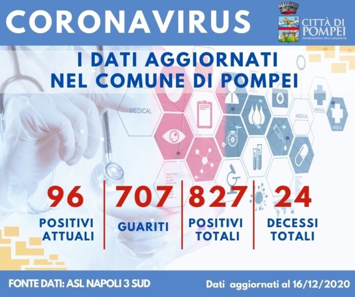 Le persone colpite dalla malattia dall’inizio della crisi epidemica sono solo 827 in totale. La brutta notizia per Pompei la si apprende dal numero dei decessi che aumenta vertiginosamente di 7 vittime pompeiane.
