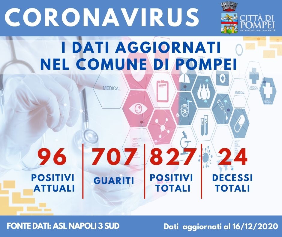 Negli ultimi 5 giorni sono stati registrati 19 nuovi positivi: sono 96 pompeiani che stanno lottando contro il virus.