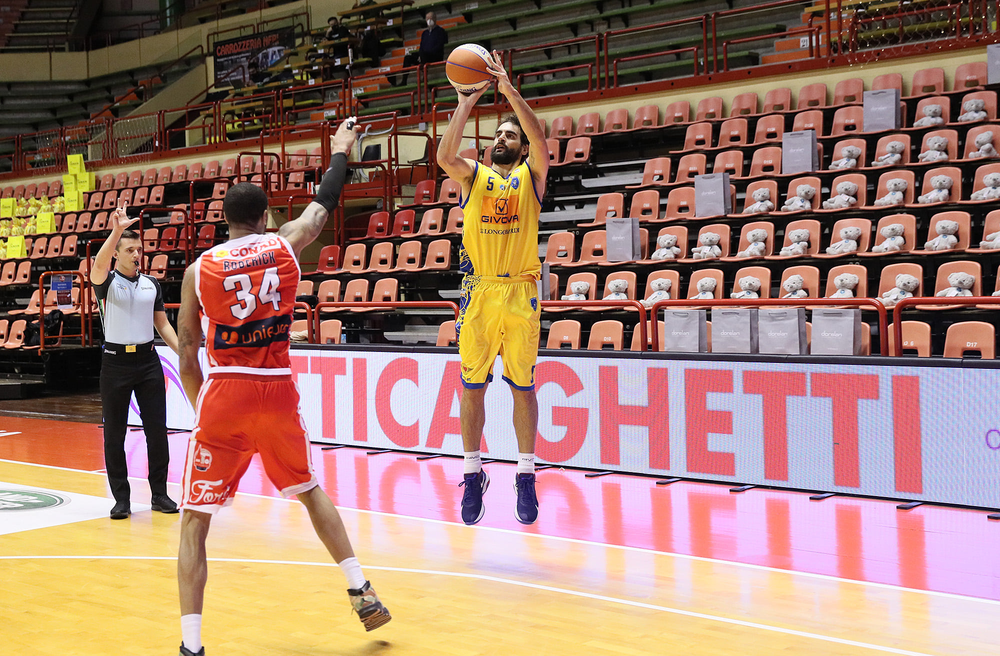 Il rettangolo di gioco emiliano ha recentemente portato bene alla Givova Scafati, che ivi ha disputato e vinto i tre incontri delle Final Eight di SuperCoppa Centenario 2020, conquistando anche il trofeo per la prima volta nella sua storia. A distanza di circa un mese e mezzo da quella cavalcata trionfale, il team salernitano ritorna a calcare lo stesso parquet, con l’obiettivo di bissare i risultati conquistati nel precampionato.