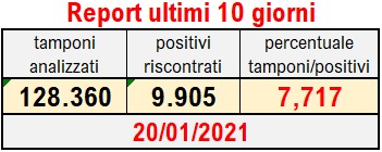 Mercoledì 20 gennaio – 7,85% – 1.215 contagiati